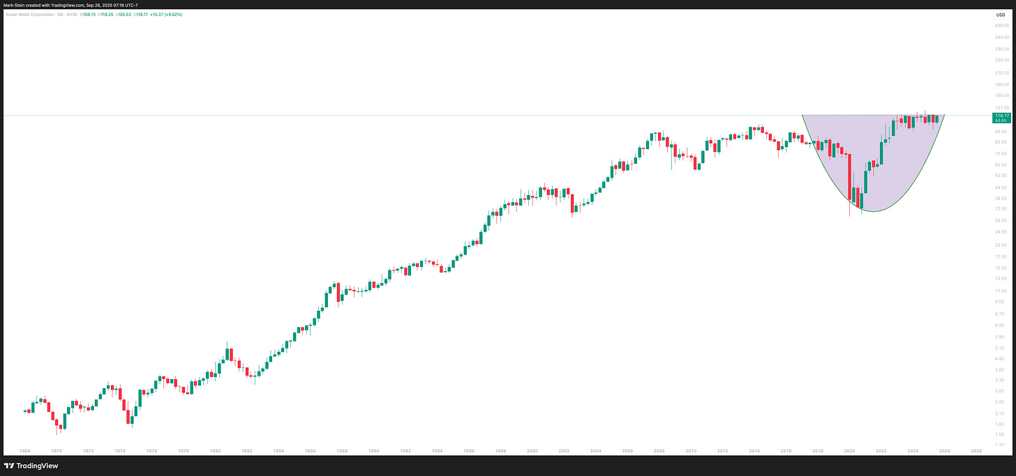 Exxon reclaiming top 5 = a double, maybe 2.5x over five years. High probability, institutional-grade trade.